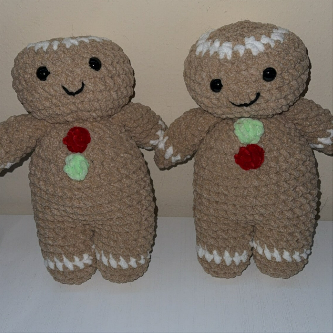 This charming crocheted gingerbread man is a sweet and festive handmade creation perfect for holiday décor or gifting. Crafted with soft brown yarn, he features classic gingerbread details, including white scalloped “icing” trim along his arms and legs, a cheerful stitched smile, and a tiny button yarn that adds a pop of color. His plush, lightly stuffed body gives him a cuddly feel, while his whimsical expression brings a touch of nostalgia and warmth. Whether hung on a tree, displayed on a shelf, or tucked into a stocking, this crocheted gingerbread man brings handmade holiday magic to any space.