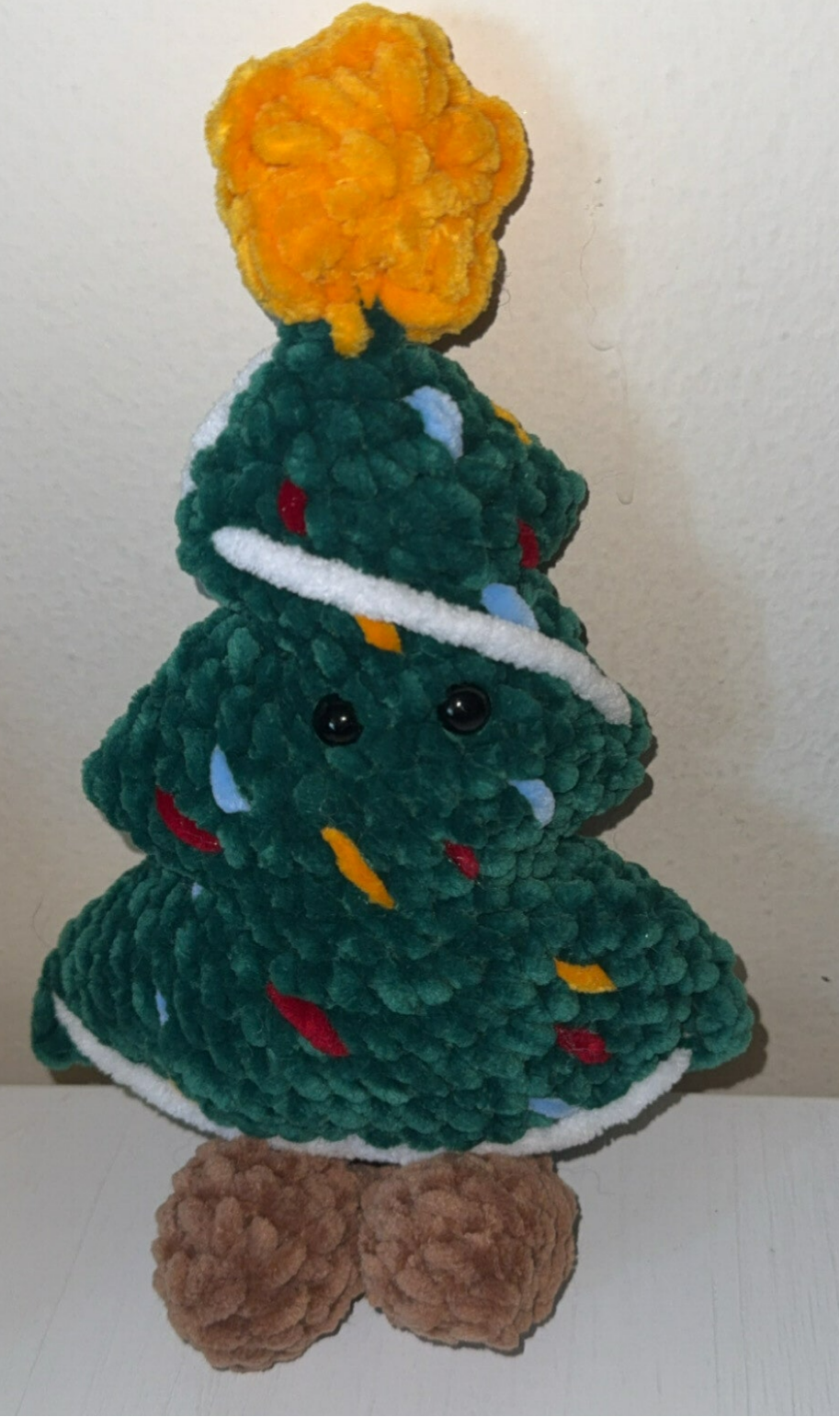These adorable crocheted Christmas trees bring festive cheer in two delightful styles, each handcrafted with care and cozy charm. The classic Christmas tree features rich green yarn, textured stitches that mimic layered branches, and optional embellishments like tiny ornaments, garlands, or a star topper—perfect for a traditional holiday look. Its soft, plush structure makes it a whimsical addition to mantels, shelves, or gift baskets.